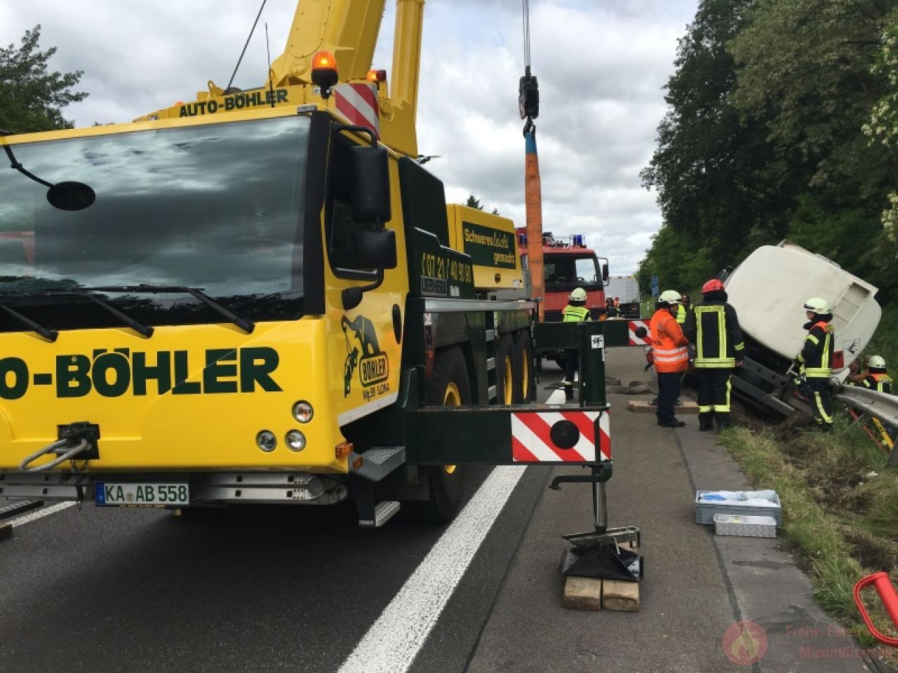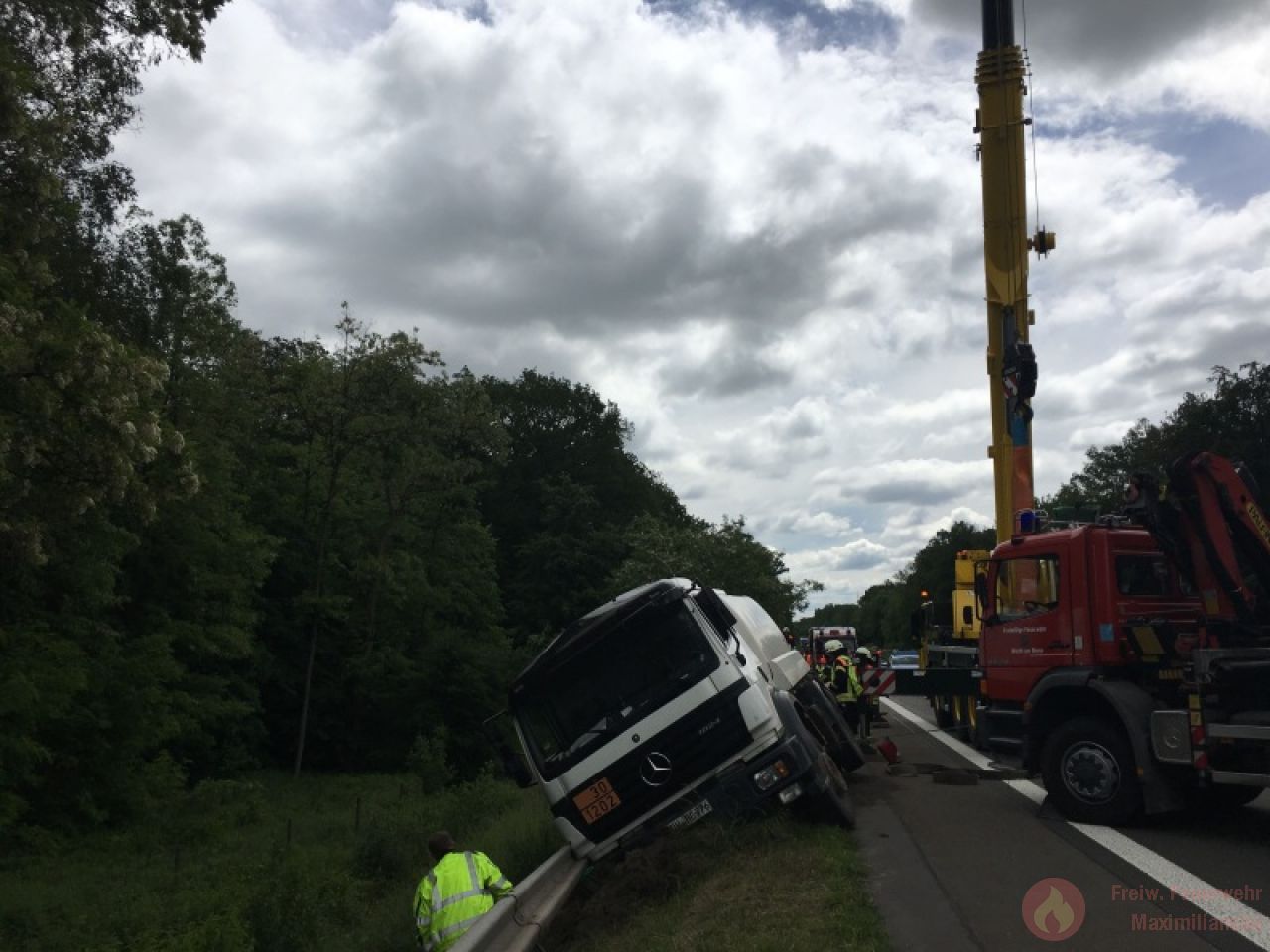 Am 01.06.2016 wurden wir um 10:54 Uhr wir zusammen mit der Einheit Maximiliansau zu einem Verkehrsunfall auf der A65 Fahrtrichtung Landau alarmiert. Ein mit Heizöl beladener Tanklastzug kam von der Fahrbahn ab und blieb dann in der Leitplanke hängen. Der Tankbehälter wurde durch den Aufprall nicht beschädigt und der Fahrer konnte das Fahrzeug unverletzt verlassen.Der Brandschutz wurde sichergestellt und das Fahrzeug mittels Seilwinde gegen weiteres Abrutschen gesichtert. Das Fahrzeug wurde durch eine Fachfirma geborgen, hierzu musste die Autobahn zeitweise Voll gesperrt werden.
