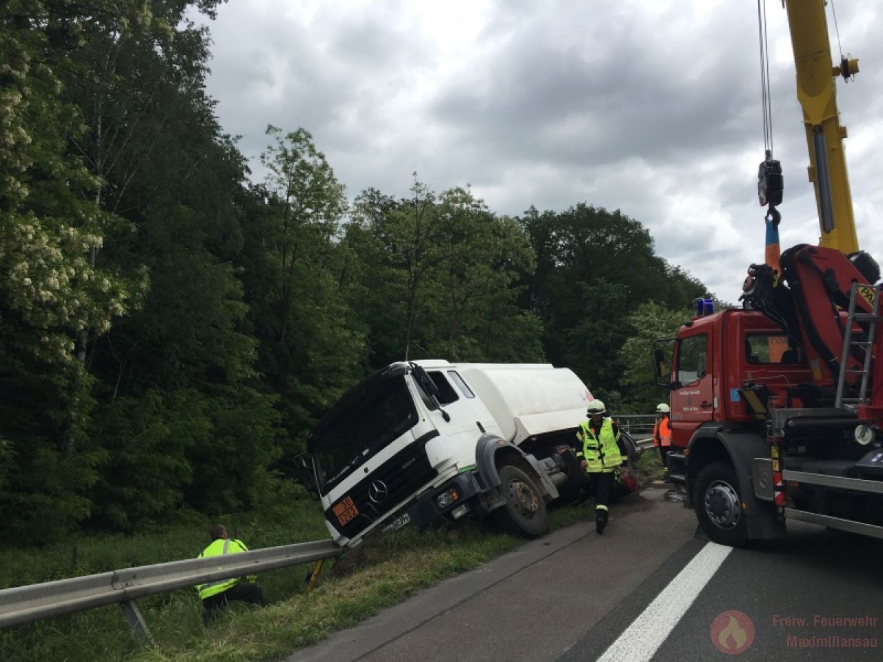 Verkehrsunfall Heizöl Tanker in Leitplanke