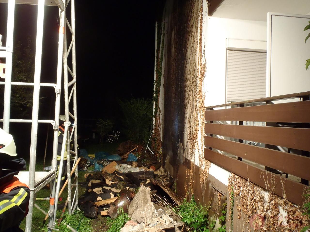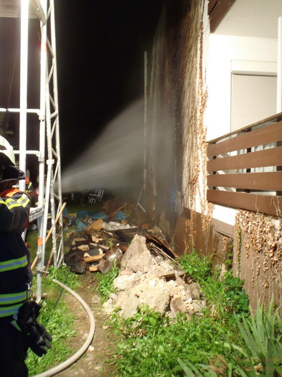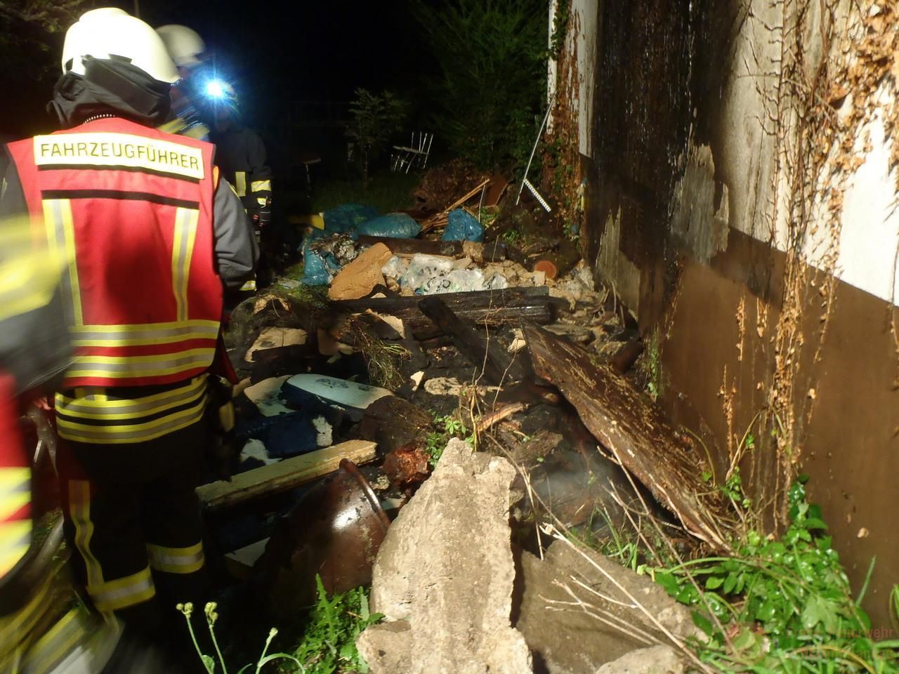 Im hinteren Grundstücksbereich brannte Baumaterial. Durch den beherzten Löschversuch der Anwohner und dem schnellen EIntreffen der Feuerwehr konnte ein Übergreifen des Brandes auf das benachbarte Gebäude verhindert werden. Das Nachbargebäude wurde im Kellerbereich kontrolliert und belüftet.
