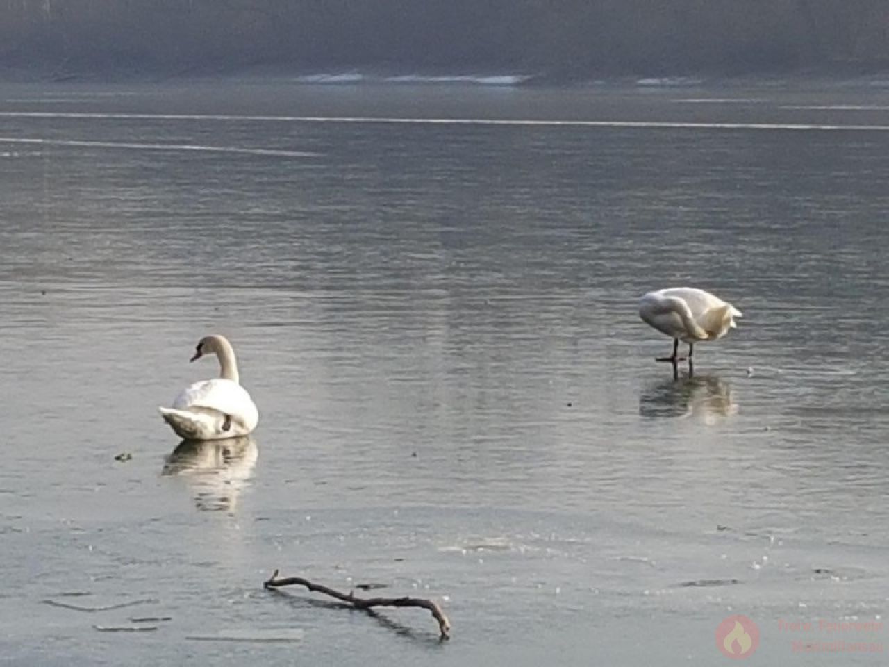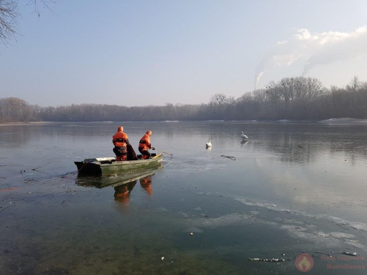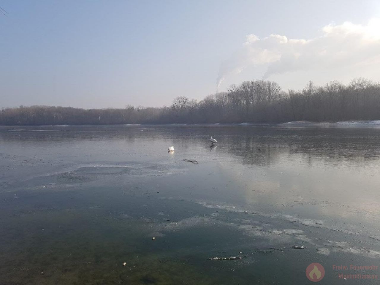 Am Sonntag Mittag wurden wir mit dem Stichwort festgefrorener Schwan auf einem Anglersee alarmiert.