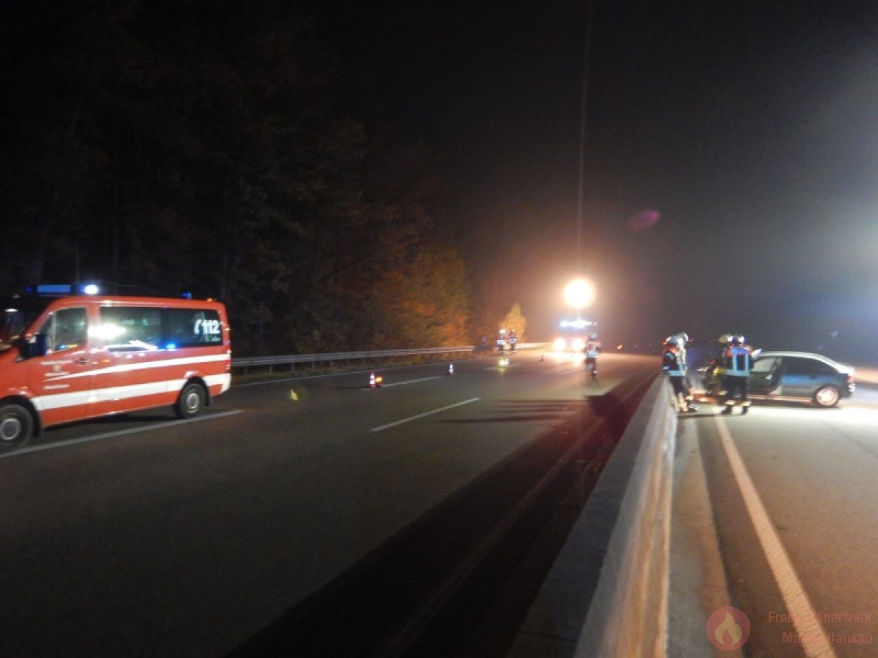 Kurz nach Mitternacht wurden wir zusammen mit den Kameraden aus Wörth zu einem Verkehrsunfall auf der A65 alarmiert. Die Einsatzstelle befand sich auf Höhe der Anschlussstelle Kandel Süd. Der Fahrzeugführer wurde bei unserem Eintreffen bereits durch den Rettungsdienst versorgt. Da es aufgrund der Aussagen des Fahrers nicht auszuschließen war, dass sich zum Unfallzeitpunkt noch weitere Personen im Fahrzeug befanden, suchten wir den Bereich auf beiden Seiten der A65 ab, um die eventuell unter Schock weggelaufenen Personen zu finden. Die Suche blieb erfolglos und wurde nach ca. 30min abgebrochen