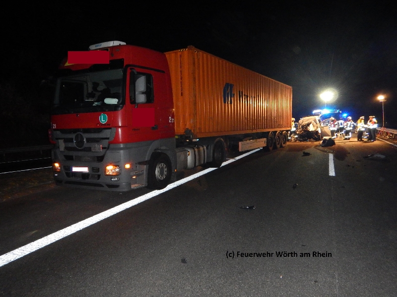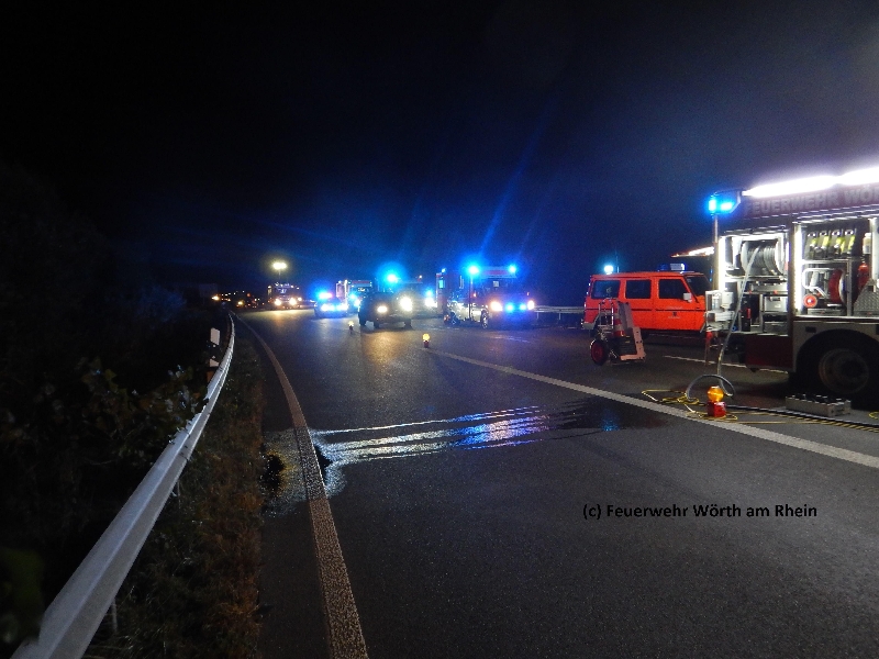 Am 26.10.2018 wurden wir um 19:48 Uhr zusammen mit der Feuerwehr Wörth zu einem gemeldeten Verkehrsunfall mit eingeklemmter Person auf die B9 alarmiert. Nach Rücksprache mit dem vor uns an der Einsatzstelle eingetroffenen Rettungsdienst wurde eine sofortige Crash-Rettung eingeleitet. Die Einsatzstelle wurde ausgeleuchtet und der Brandschutz wurde sichergestellt. Leider kam für den schwerst eingeklemmten Insassen des PKW jede Hilfe zu spät.