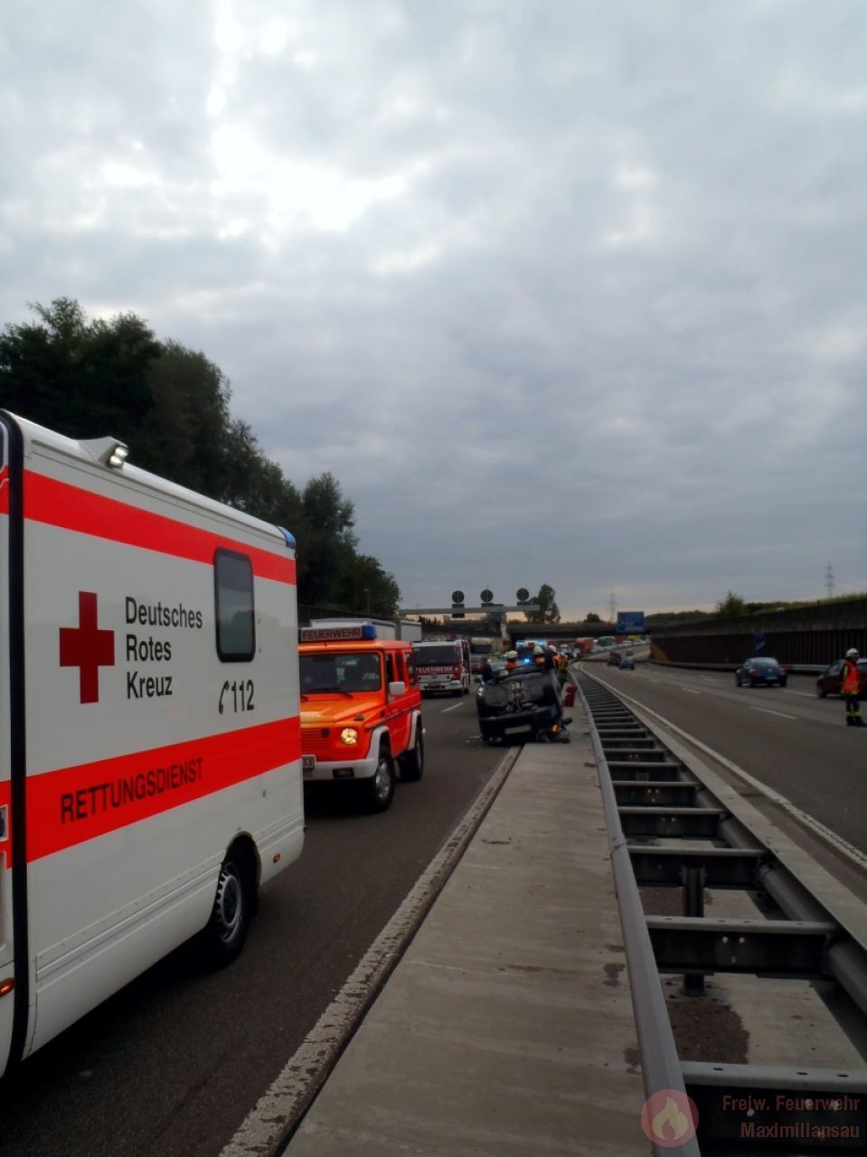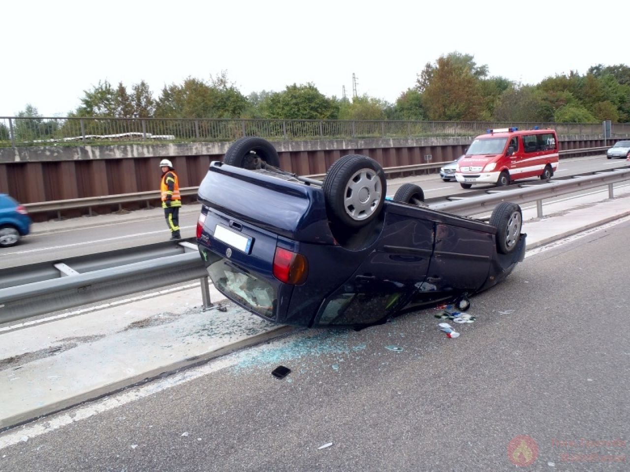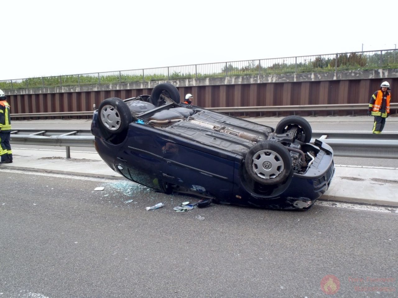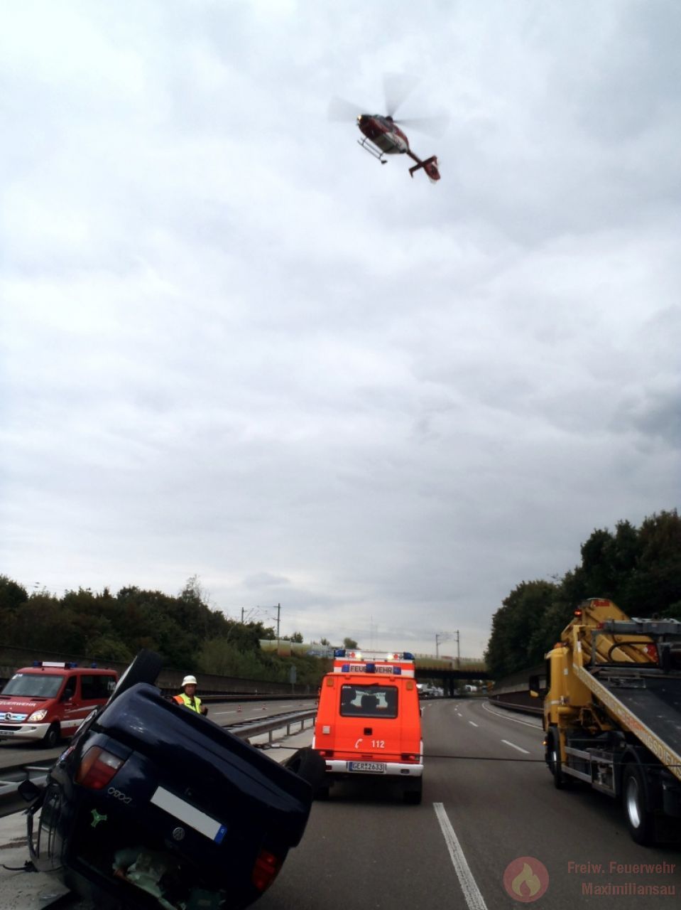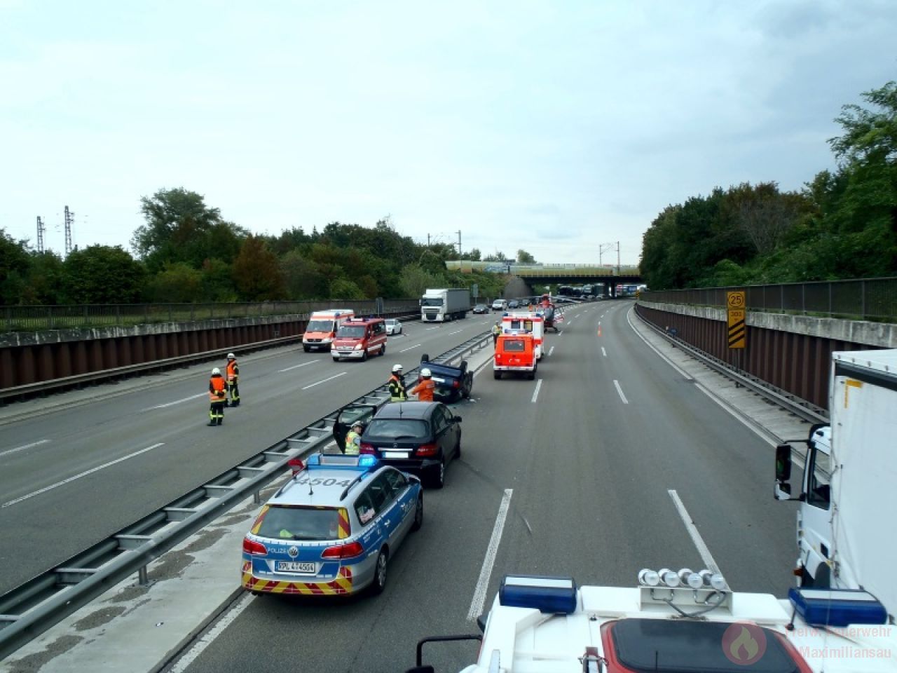 Verkehrsunfall zwischen einem PKW und einem LKW auf der Autobahn 65. Die Feuerwehreinheiten Wörth und Maximiliansau sicherten die Unfallstelle und die Landung des Rettungshubschraubers ab.