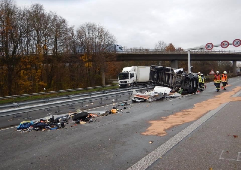 Wir sicherten die Unfallstelle ab und unterstützten bei der Versorgung der verunfallten Person bis zum Eintreffen des Rettungsdienstes. Die Autobahn in Fahrtrichtung Karlsruhe wurde bis zur vollständigen Bergung der Fahrzeuge gesperrt.