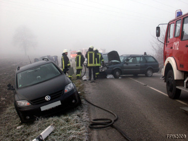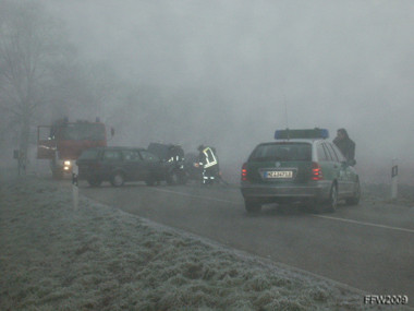 Kurzbericht: | Am Donnerstag Morgen wurden die Einheiten Maximiliansau und Wörth zu einem Fahrzeugbrand zwischen den Ortschaften Hagenbach und Maximiliansau alarmiert. Nach Eintreffen an der Einsatzstelle stellte sich heraus das es sich hierbei nicht nur um einen Fahrzeugbrand, sondern um einen Verkehrsunfall mit 3 beteiligten PKW von denen einer zu brennen angefangen hatte, handelte. Durch einen Trupp unter Atemschutz konnte der Brand schnell gelöscht werden. Des Weiteren wurde nach Absprache mit der Polizei die Landstraße voll gesperrt und die verunfallten PWK's durch Abschleppdienste abtransportiert. |
