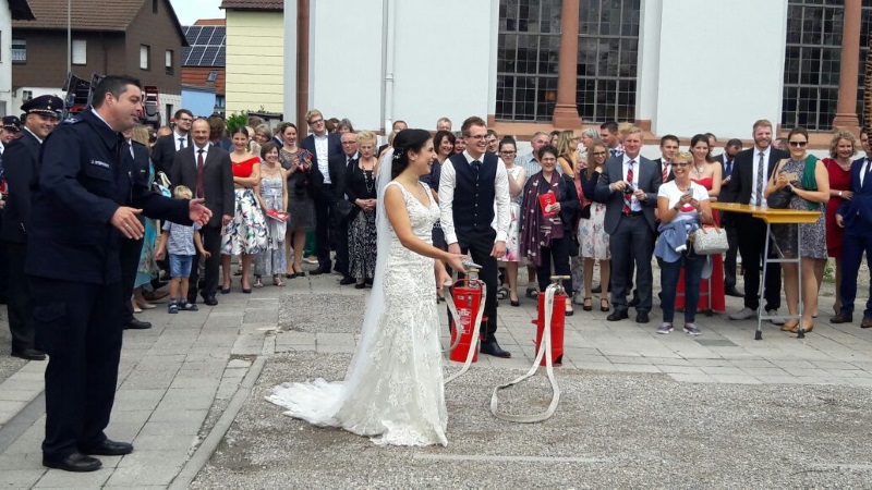 bereiteten wir Ihnen einen zünftigen Feuerwehrempfang vor der Kirche. Zu ehren der